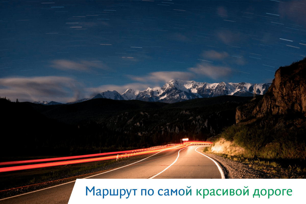 | | | | Во время этого путешествия вы проедете около тысячи километров на комфортном микроавтобусе, 95 километров — по воде на рафте и катере, еще 30 — пройдете пешком по красивым алтайским тропам. | | | | Проехать по знаменитому Чуйскому тракту | | | | Чуйский тракт входит в рейтинг самых живописных автодорог мира по версии редакции «National Geographic Россия» — и в этом путешествии у вас будет возможность убедиться в его безоговорочной красоте. Белоснежные пики Северо-Чуйского хребта и перевалы, от которых перехватывает дыхание. Высокогорные степи и ландшафты, которые напоминают Марс. Ледниковые озера и курганы, которым тысячи лет. Всё это можно увидеть за одну поездку по главной автотрассе Алтая.