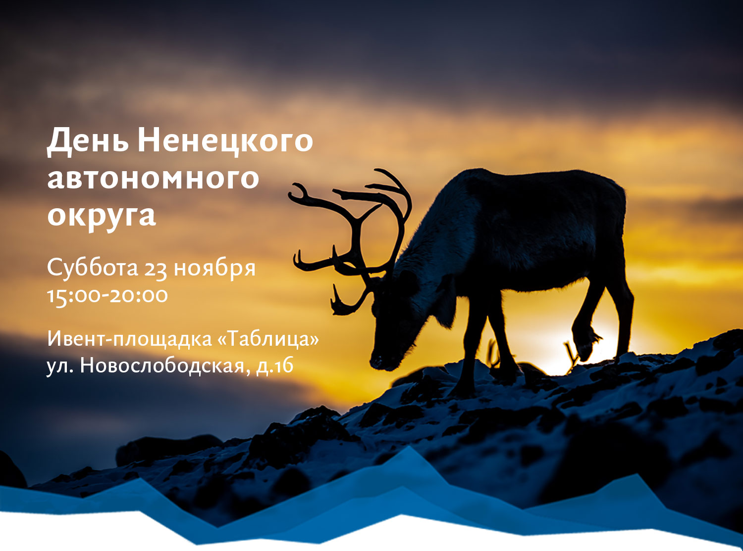 | | | Здравствуйте! Мы приглашаем вас на День Ненецкого автономного округа. В субботу 23 ноября вас ждут лекции, мастер-классы, показ мод от ненецких дизайнеров, национальные танцы и фотовыставка. В программе Дня НАО: - лекции о путешествиях по НАО