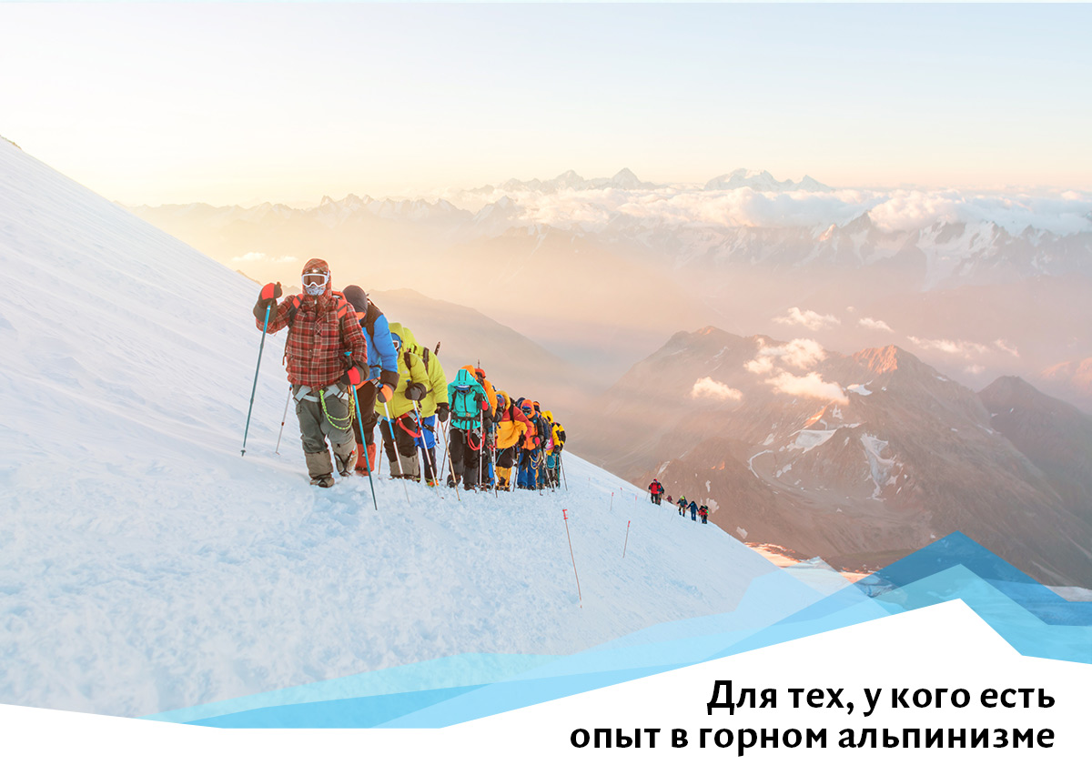 Эта программа подойдет тем, у кого прежде не было опыта восхождений. Маршрут рассчитан на 9 дней, чтобы ваша акклиматизация прошла максимально комфортно и эффективно. Само восхождение состоится только на седьмой день, а перед этим вас ждут акклиматизационные выходы к водопаду Девичьи косы, обсерватории Российской академии наук, на вершину горы Чегет и скалы Пастухова.