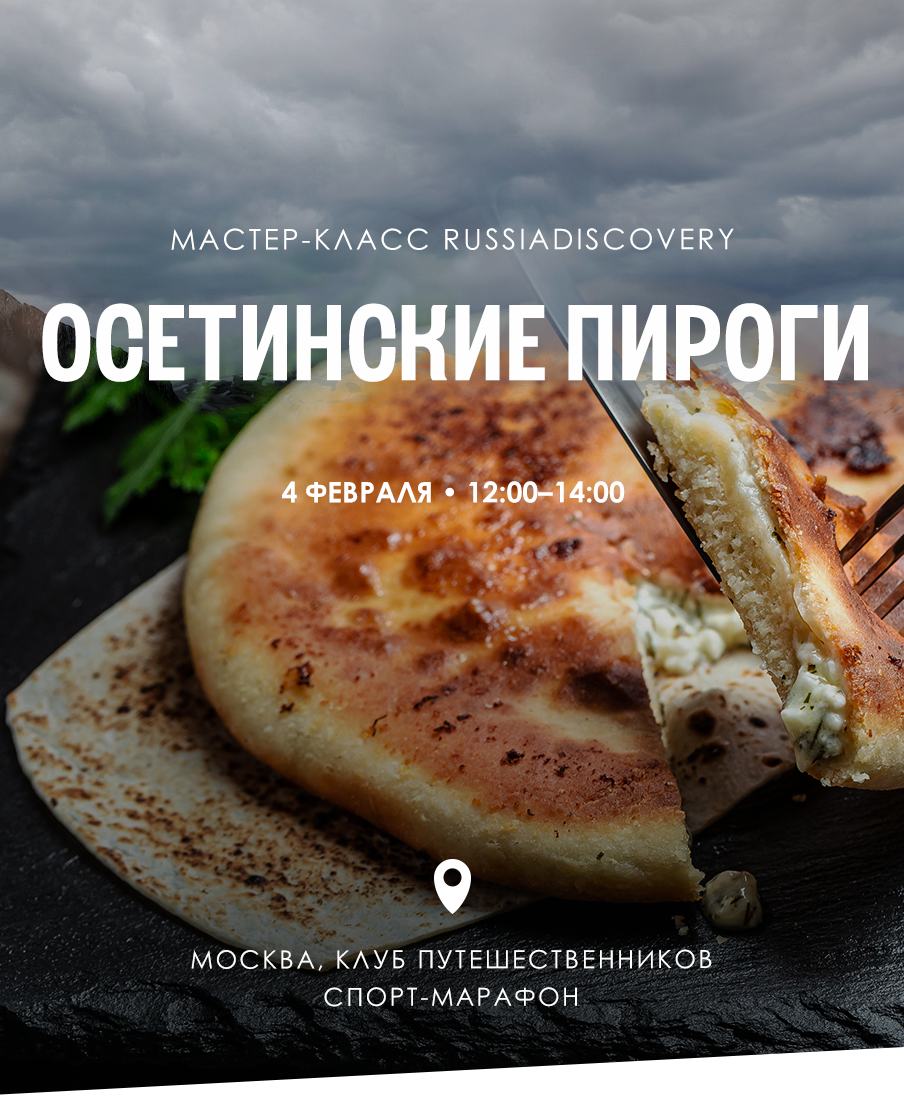 | | | | Наших путешественников мы приглашаем отдельно на закрытый мастер-класс по приготовлению осетинских пирогов в компании единомышленников. Готовить будем под руководством лучших осетинских пекарей Москвы. А потом дегустировать, конечно! И говорить о приятном :) | | | | Осетинский пирог — это всегда мало теста и много-много сочной начинки! В 1 килограмме такого пирога должно быть 300 грамм теста и 700 грамм начинки. При этом начинка бывает не только из сыра. Бывают пироги с тыквой, картофелем, капустой, вишней, мясным фаршем и их сочетаниями... | | | | На мастер-классе мы научимся готовить разные осетинские пироги по рецептам, которым уже несколько сотен лет! Это бесплатно, но количество мест ограниченно — пожалуйста, зарегистрируйтесь, чтобы мы подготовились ;) | | | Вы получили это письмо, так как подписаны на рассылку RussiaDiscovery. Отписаться | | | |