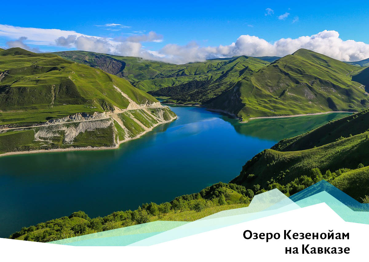 | | | | | | | | | Озеро Кезенойам — самое большое на Северном Кавказе и одно из самых красивых. Оно расположено на границе Чеченской республики и Дагестана, среди живописных горных склонов. Место точно понравится тем, кто любит фотографировать: у озера необычный цвет, который в зависимости от погоды меняется от небесно-голубого до насыщенного синего и бирюзового. Горы укрывают озеро от ветров, поэтому на нем нет волн, и выглядит оно как зеркало.