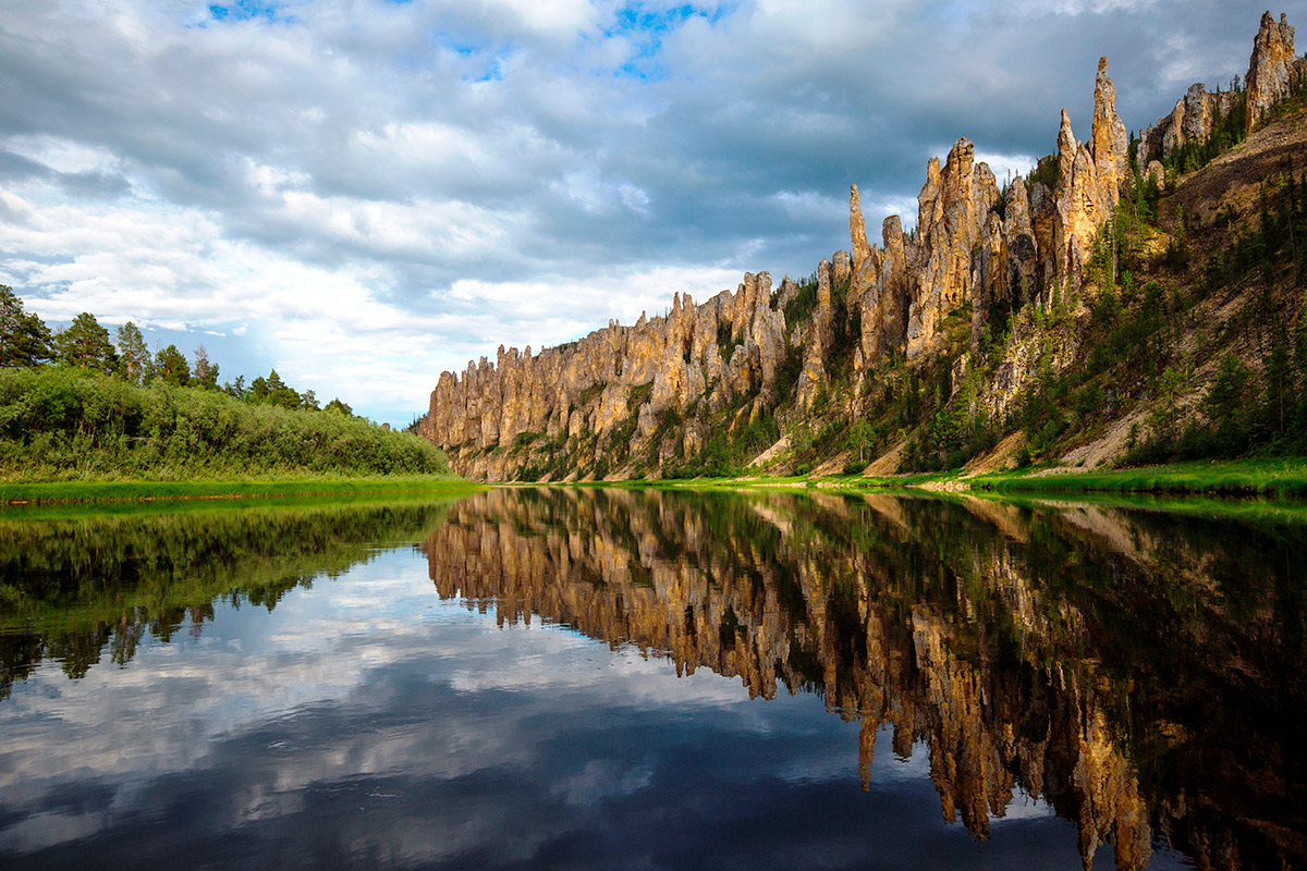 Ленские столбы – вертикальные каменные столбы протянулись на километры вдоль берега реки. На горных породах помимо наскальных рисунков сохранились окаменелости и отпечатки членистоногих возрастом около 500 миллионов лет.