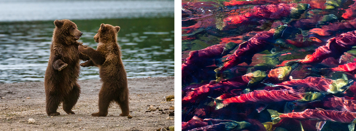 | | | | Каждый год в Курильском нерестится крупнейшая популяция азиатской нерки — до 2 миллионов особей. Поэтому летом здесь собираются сотни медведей, которые устраивают большую рыбалку в многочисленных притоках рек, впадающих в озеро.