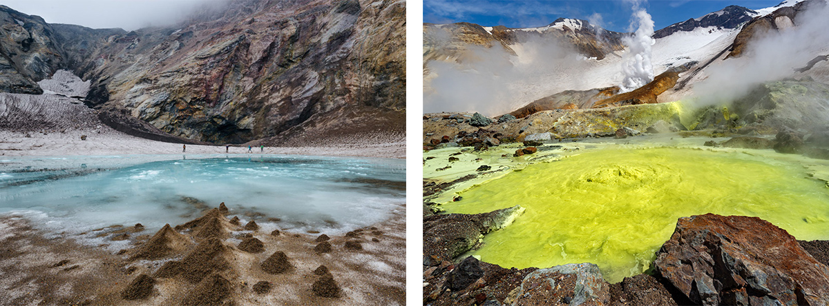 | | | | Восхождение в кратер Мутновского вулкана — один из самых активных вулканов Евразии. Вы увидите грязевые вулканы, гигантские ледники, разноцветные выходы горных пород и огромное фумарольное поле с парами сернистых газов.