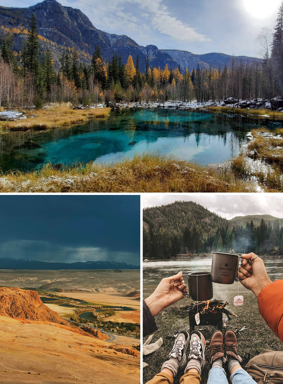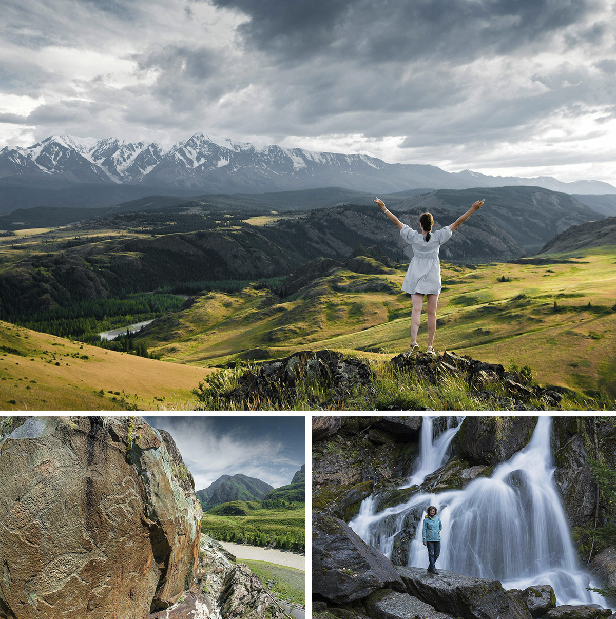 | | | | Выбирайте это путешествие, если хотите отдохнуть в горном глэмпинге и пить утренний кофе с видом на заснеженные вершины. Отправиться в треккинг к водопадам, подняться на одну из вершин и запечатлеть пейзажи с высоты птичьего полета. Прикоснуться к очень древним памятникам и наскальным рисункам местных святилищ. Природа, история и культура Алтая в одной поездке.