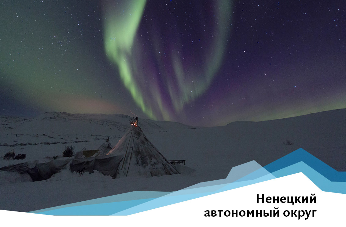 | | | | | | | | | НАО — это телепорт в другой мир всего через 2 часа полета на самолете. Здесь вместо квартиры в многоэтажке — укрытый шкурами чум, вместо телевизора — северное сияние, вместо домашней собаки — игривый северный олень. В этом необычном путешествии вы увидите настоящую Арктику, проедете на снегоходах по бескрайней тундре и познакомитесь с бытом и обычаями ненецких оленеводов.
