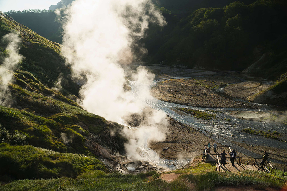 Увидите труднодоступные места юга Камчатки: Нижне-Кошелевское гейзерное поле, урочище «Кутхины баты» и др. А также посетите «визитные карточки» полуострова — бухту Русская, где можно увидеть крупное лежбище сивучей, стаи китов и косаток. Кратер Мутновского вулкана — один из самых активных вулканов Евразии.